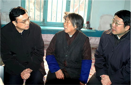 2004年12月26日,李克强同志到辽宁省抚顺市莫地沟棚户区居民王淑贞家中走访调研。新华社发