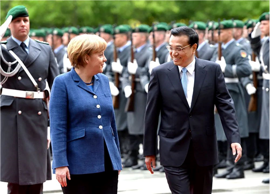2013年5月26日,李克强同志在柏林出席德国总理默克尔举行的欢迎仪式。新华社记者 马占成 摄