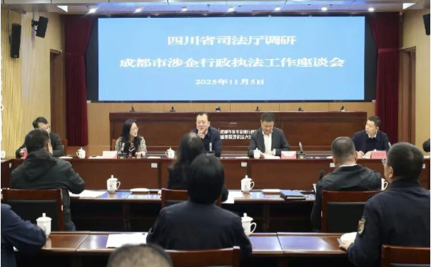 11月5日,司法厅党委书记、厅长李丹带队到成都城市管理行政执法总队,专题调研规范涉企行政执法工作。