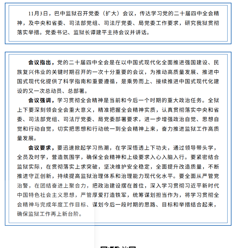 巴中监狱召开党委(扩大)会议传达学习党的二十届四中全会精神