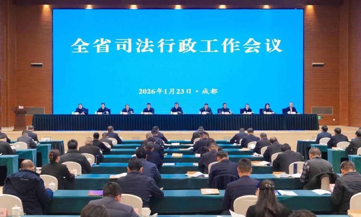 1月23日,全省司法行政工作会议在成都召开。会议坚持以习近平新时代中国特色社会主义思想为指导,深入学习贯彻习近平法治思想和习近平总书记对四川工作系列重要指示精神,贯彻落实中央政法工作会议、全国司法厅(局)长会议和省委政法工作会议精神,总结2025年工作,分析形势,安排部署2026年任务。省委依法治省办副主任,司法厅党委书记、厅长李丹出席会议并讲话。司法厅党委副书记、副厅长王彬主持会议。