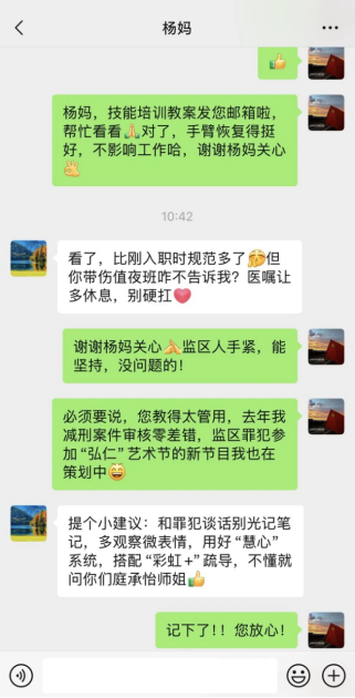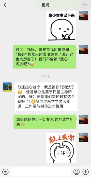 偶然间,即将退休的民警杨梅的微信聊天界面被我们发现了。于是,我们向她的部分聊天对象收集了他们的聊天记录。而这些,也正好印证了杨梅“38年警路,匠心传薪火”的一生