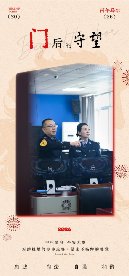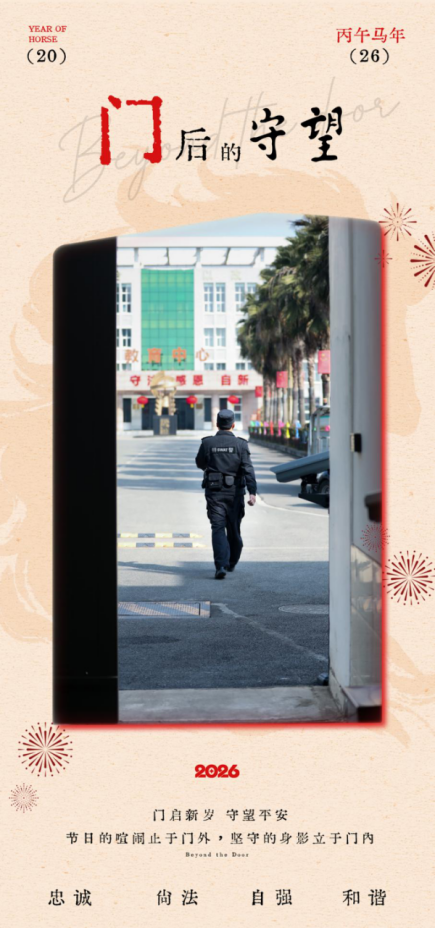万家团圆时,坚守正当时。透过一扇扇责任之门,我们看见坚守的身影、责任的光芒,这些更是马年新春里最动人的担当,他们的身影,汇聚成高墙内最坚固的“安全门”。谨以此文致敬春节期间在岗民警职工,以坚守护平安,以忠诚启马年新程。马年新春,愿每一份坚守皆有回响,每一份付出常伴温暖,愿山河无恙、平安顺遂。