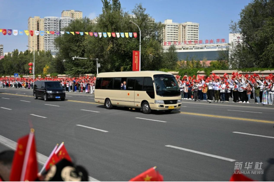 23日下午乘专机抵达乌鲁木齐,出席新疆维吾尔自治区成立70周年庆祝活动。习近平等在机场和乌鲁木齐市区受到新疆各族群众的热烈欢迎。中共中央政治局常委、全国政协主席、中央代表团团长王沪宁,中共中央政治局常委、中央办公厅主任蔡奇等同机抵达。(文字记者:张晓松 朱基钗 摄影记者:谢环驰 燕雁 姚大伟 辛悦卫)