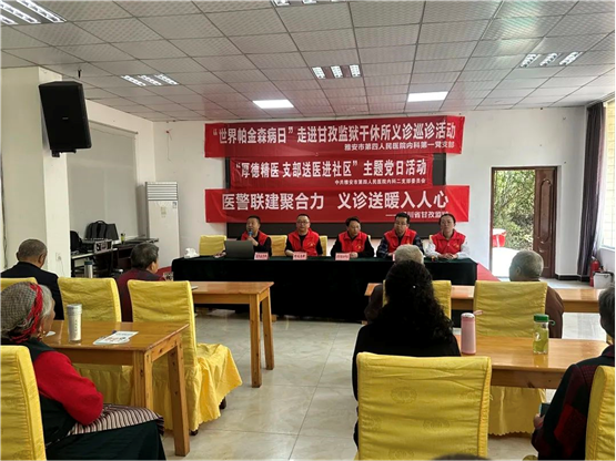 随着我国人口老龄化,老年病也日益增长。为进一步深化“狱地联动”,充分体现我狱对离退休民警职工身心健康的关心关爱,加强预防老年病、基础病的健康宣教,4月11日,甘孜监狱联合雅安市第四人民医院,为雅安干休所退休民警职工送上一堂“老年人健康知识讲座”,同时开展义诊服务。