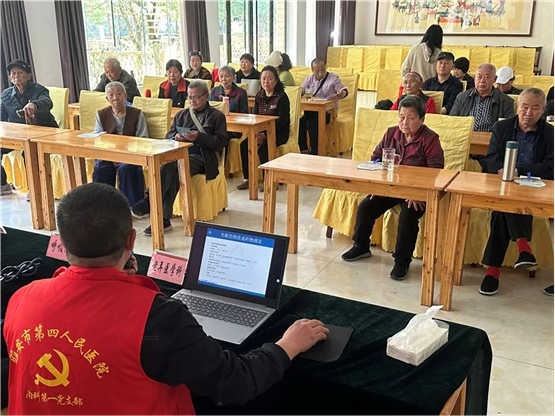 讲座上,雅安市第四人民医院老年医学中心科的李家忠副主任医师通过日常生活中典型的案例,用生动朴实的语言科普老年失眠障碍、高血压、糖尿病的预防、控制和治疗。