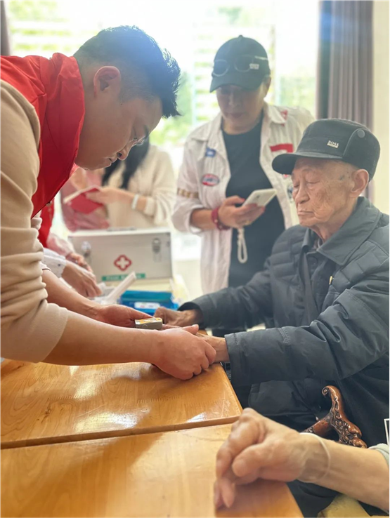 义诊现场,医务人员为所有退休人员提供测量血压、血糖、血氧饱和度等诊疗服务。老年医学中心李家忠、胡晓亮、涂尊魁副主任医师和康复医学科姜尚华副主任医师针对睡眠障碍、筋骨疼痛的人员,根据穴位疗法,为他们进行了现场治疗,对患有内外科常见病、慢性病的退休人员把脉听诊,为他们答疑解惑,并将注意事项一一嘱托。