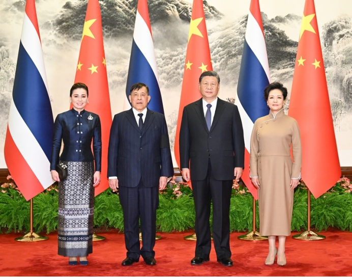 习近平表示,哇集拉隆功国王将中国作为首个国事访问的大国,成为中泰建交以来首位访华的泰国国王,充分体现了对中泰关系的高度重视和“中泰一家亲”的深厚情谊。习近平对诗丽吉王太后不久前逝世表示哀悼,指出泰国王室同中国渊源深厚,为促进中泰友好作出重要贡献,中方对此深表赞赏。今年是中泰建交50周年暨“中泰友谊金色50年”。建交半个世纪以来,面对国际风云变幻,中泰两国始终并肩携手、守望相助,是真正的好亲戚、好朋友、好伙伴。站在新的历史起点,我愿同哇集拉隆功国王引领中泰命运共同体建设在下一个50年取得更大进展,共同书写中泰友好的新篇章。