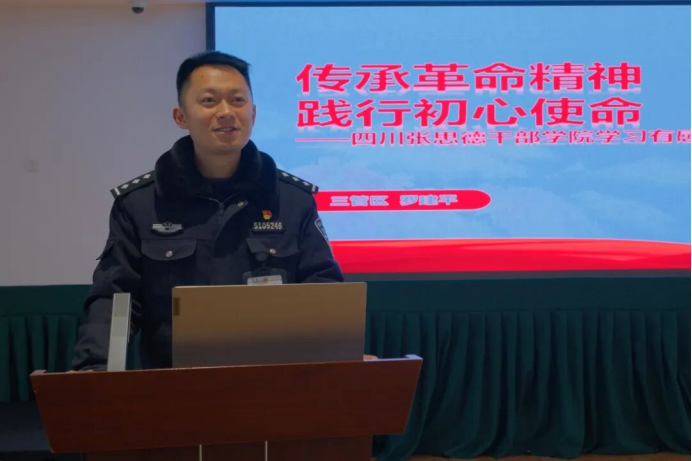三管区民警罗建平分享了在张思德干部学院的学习体会。他以“传承革命精神,践行初心使命”为主题,深刻解读了朱德同志“一生奉献、践行誓言”的崇高风范,以及张思德同志“全心全意为人民服务”的根本宗旨。他感慨,“两德”精神是跨越时空的宝贵财富,激励我们在新时代监狱工作中永葆忠诚、厚植为民情怀。