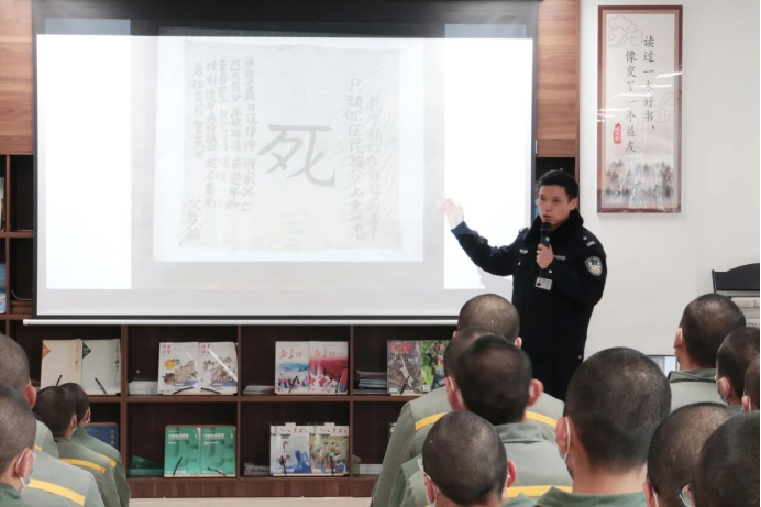 《川军抗战实录》中,战士们手握简陋武器却奋勇作战的画面,“死”字旗上“伤时嗜血,死后裹身”的嘱托,带来强烈的视觉冲击与情感共鸣。《特级英雄黄继光》片段,深度展现了川籍英雄跨越时空的勇敢与奉献。未成年犯们观看时神情专注,这些影像让他们对“牺牲”与“守护”有了更具体的理解,进一步深入反思自身违法行为对他人、对社会的伤害,从而更加坚定“洗心革面、重新做人”的信念。