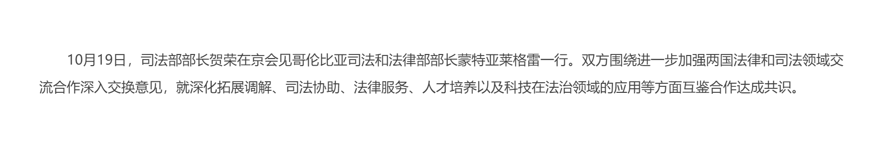 贺荣会见哥伦比亚司法和法律部部长蒙特亚莱格雷