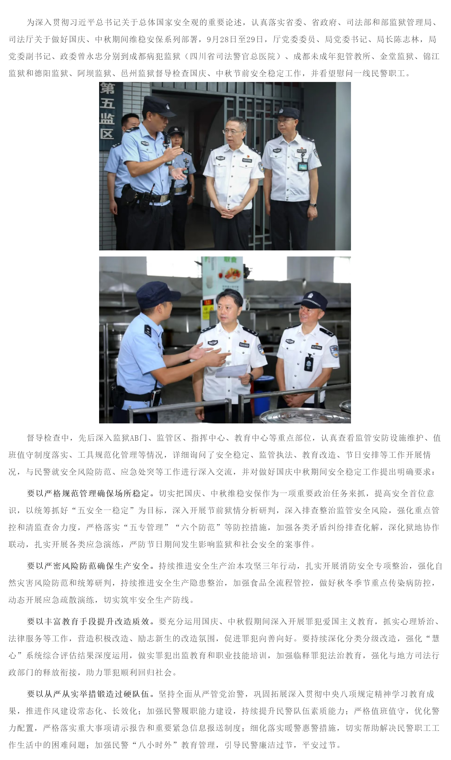 省监狱管理局督导检查监狱国庆、中秋节前安全稳定工作