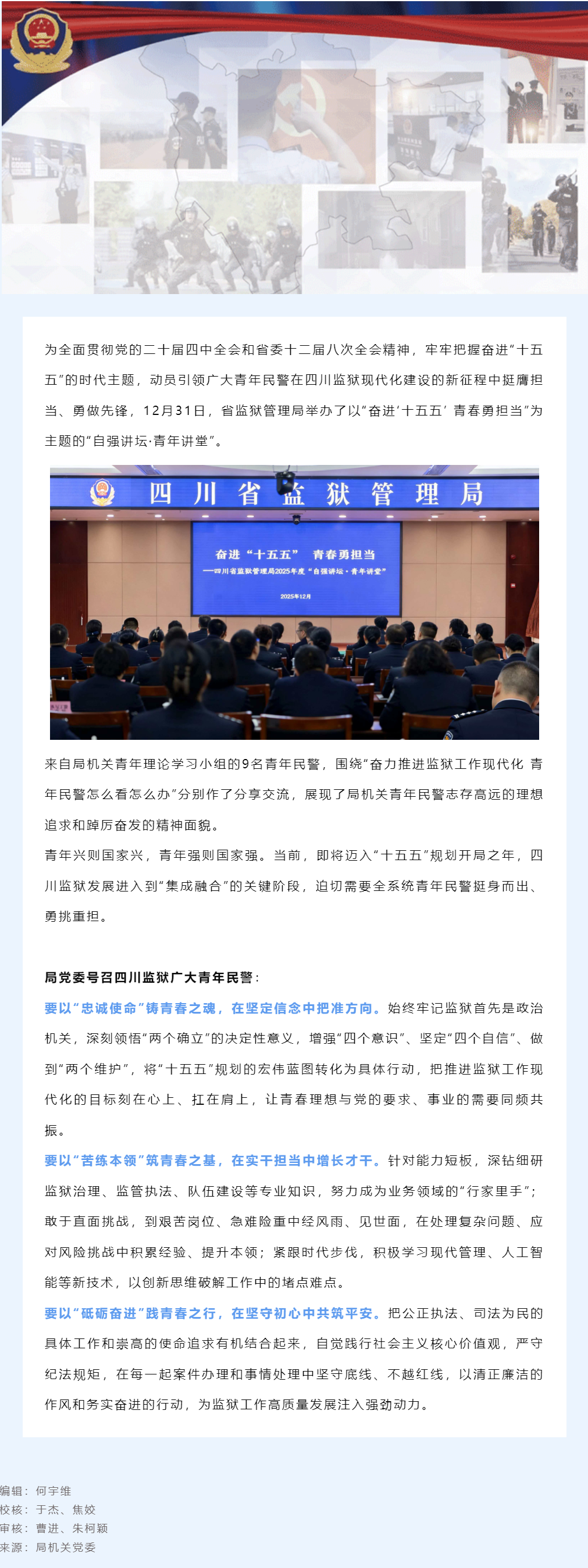 四川省监狱管理局举办2025年度“自强讲坛·青年讲堂”
