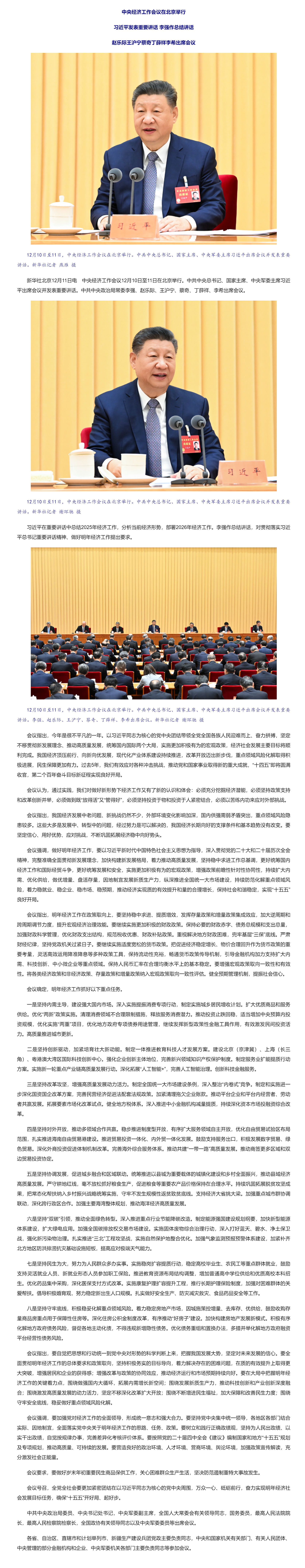 中央经济工作会议在北京举行 习近平发表重要讲话