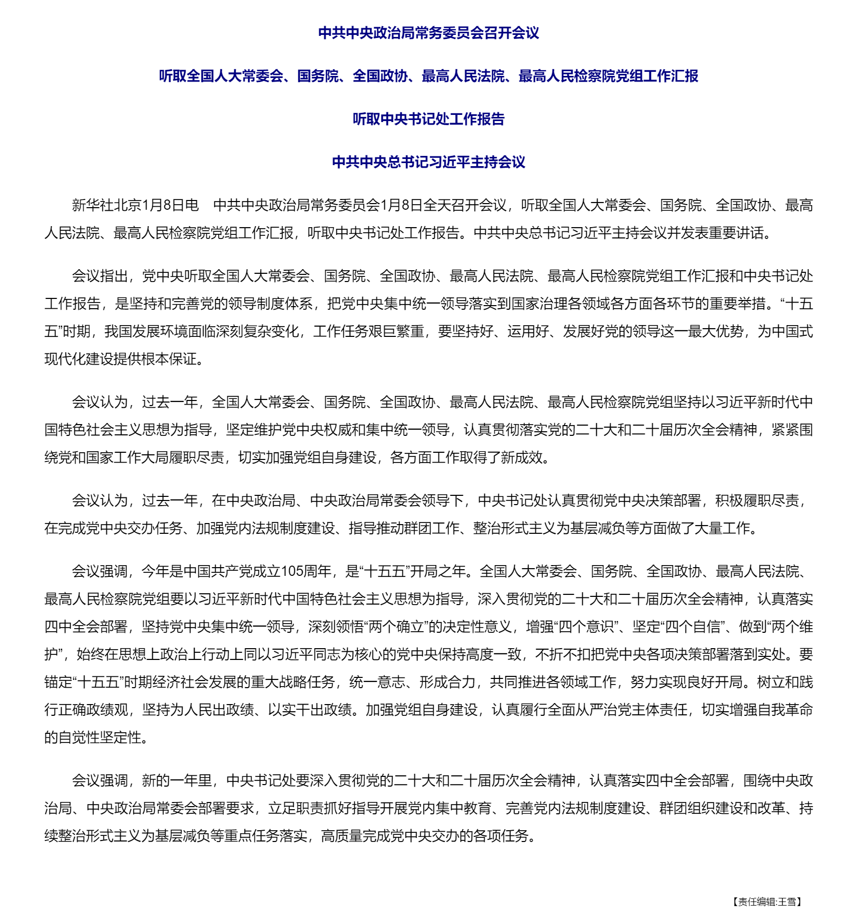 中共中央政治局常务委员会召开会议 中共中央总书记习近平主持会议