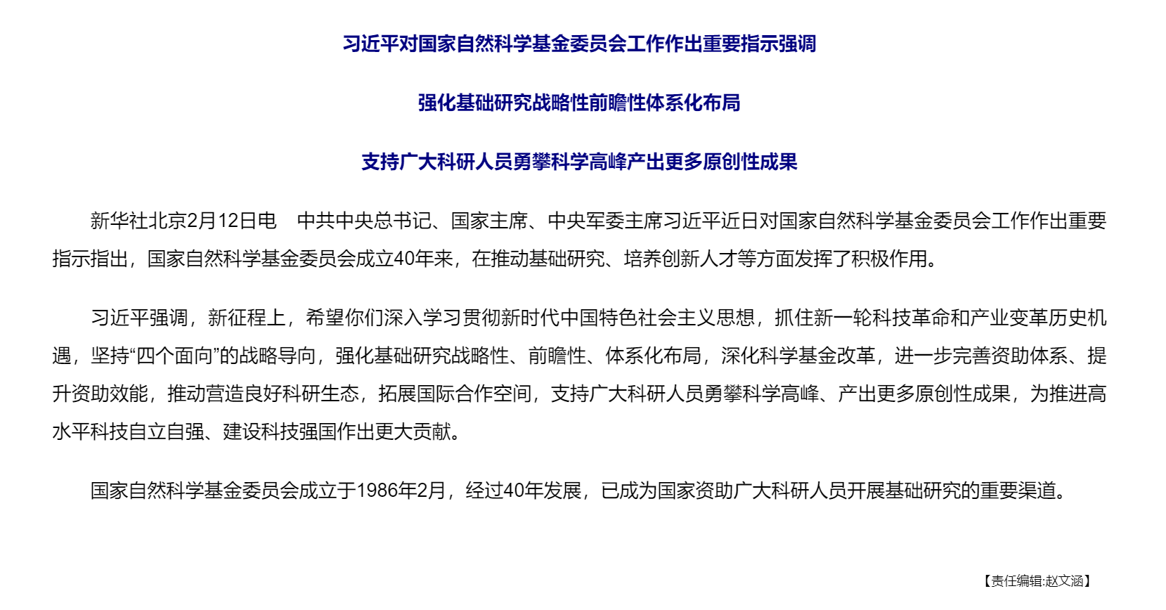 习近平对国家自然科学基金委员会工作作出重要指示