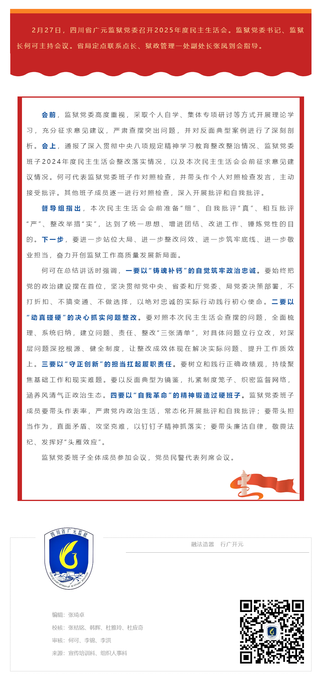 四川省广元监狱党委召开2025年度民主生活会