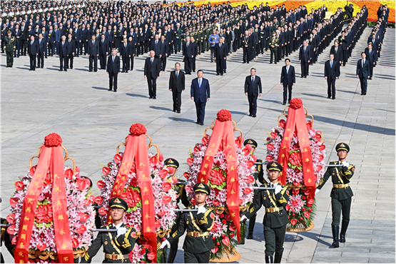 9月30日上午,党和国家领导人习近平、李强、赵乐际、王沪宁、蔡奇、丁薛祥、李希、韩正等来到北京天安门广场,出席烈士纪念日向人民英雄敬献花篮仪式。