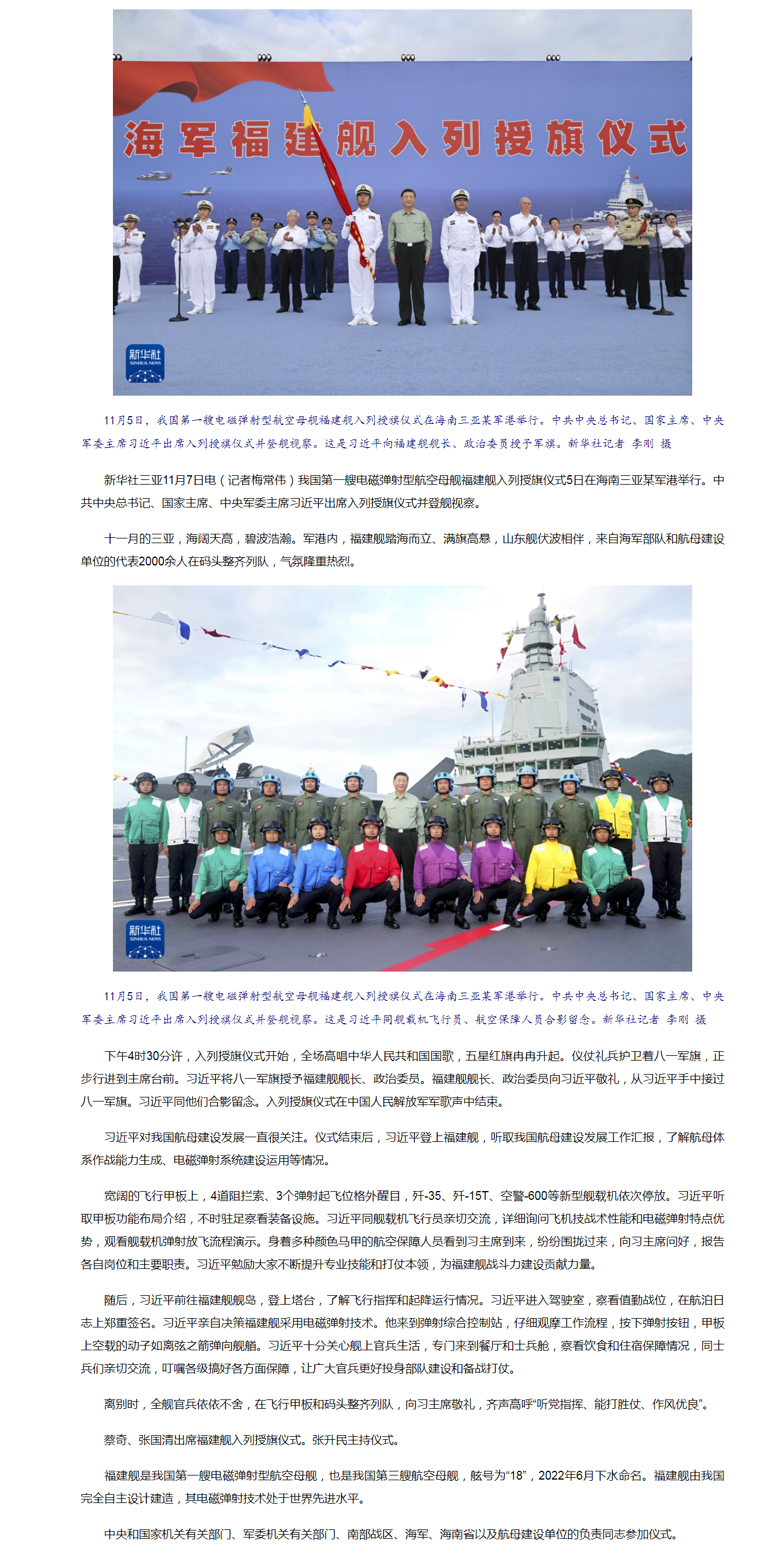 我国第一艘电磁弹射型航空母舰入列 习近平出席入列授旗仪式并登舰视察