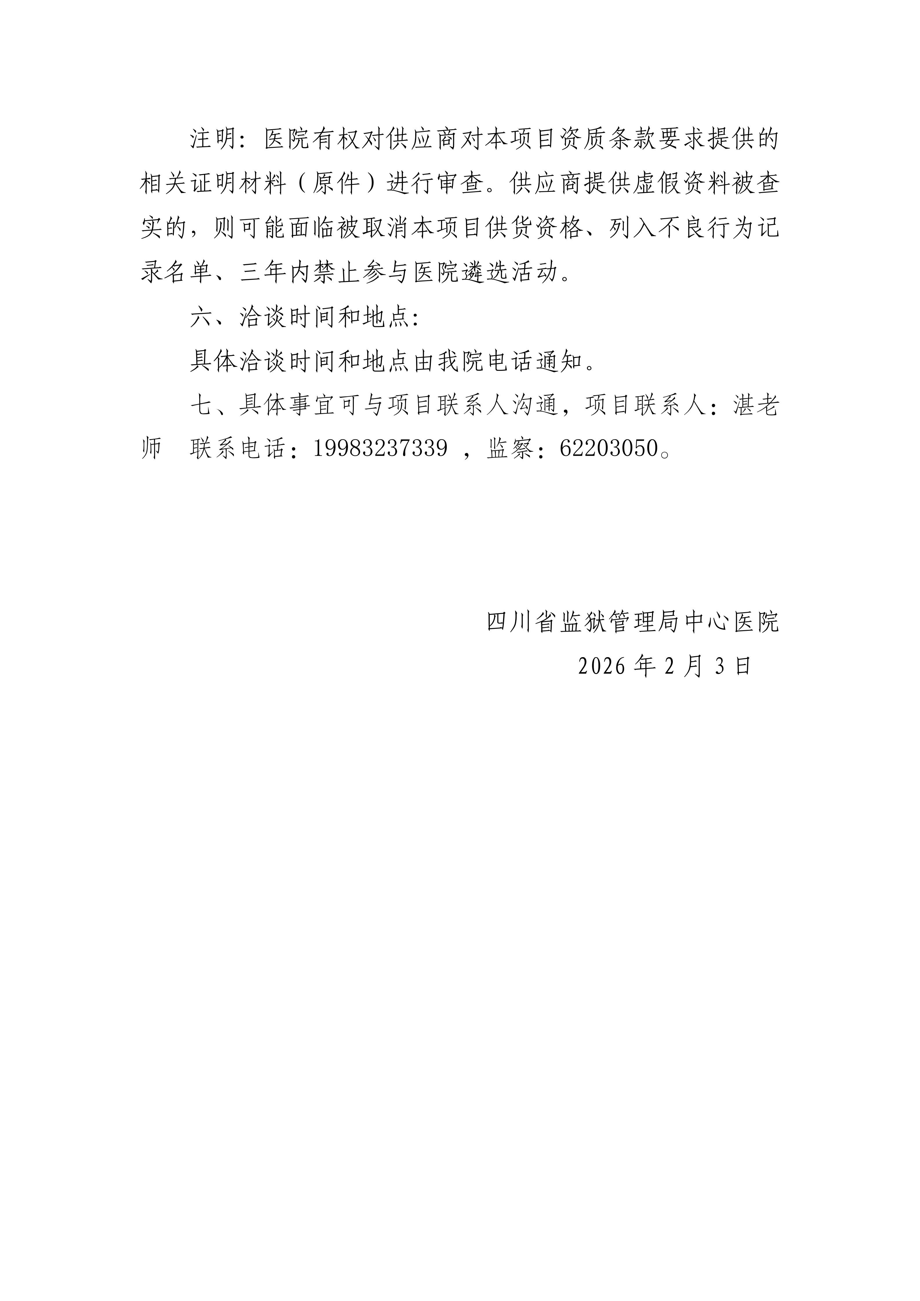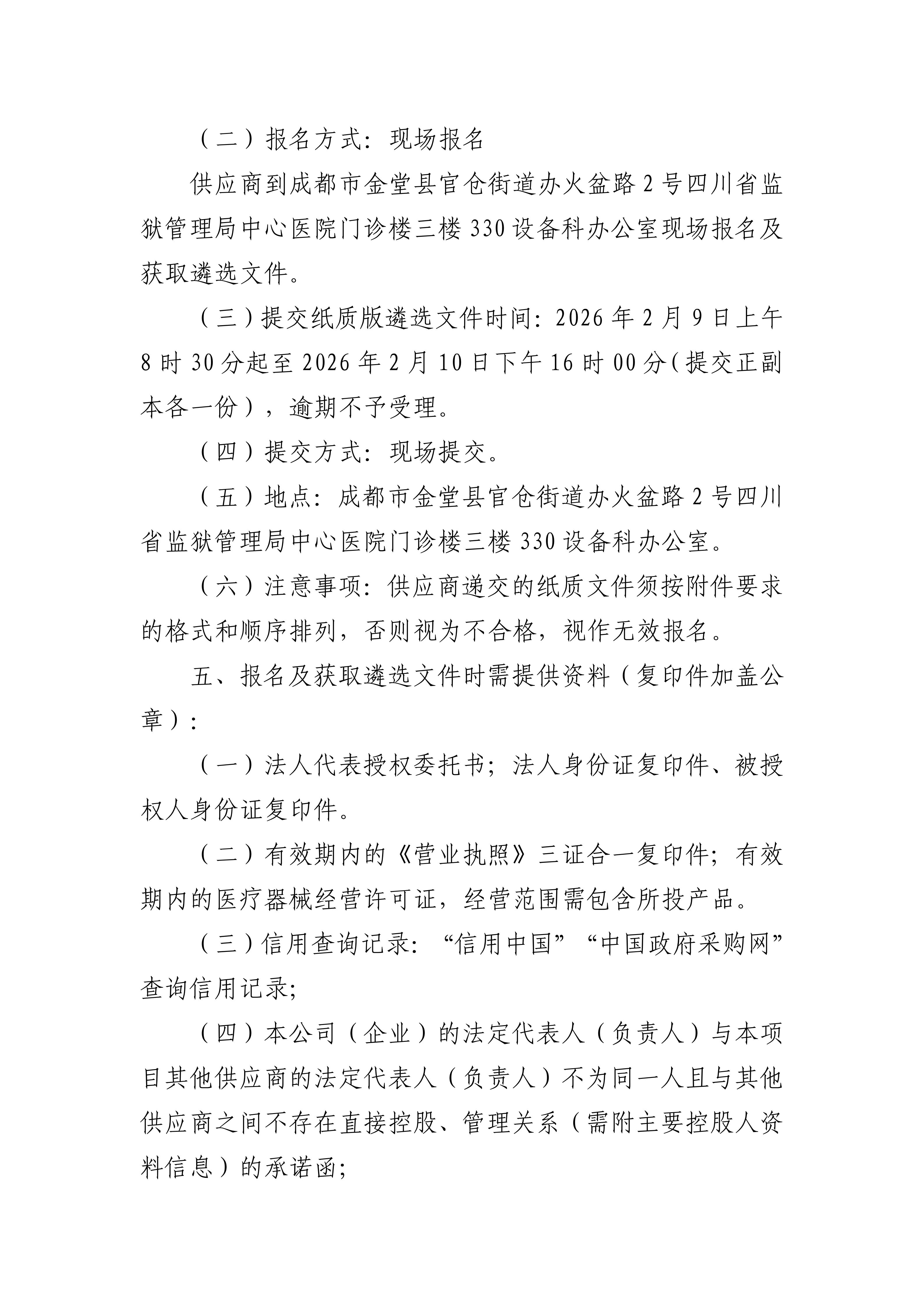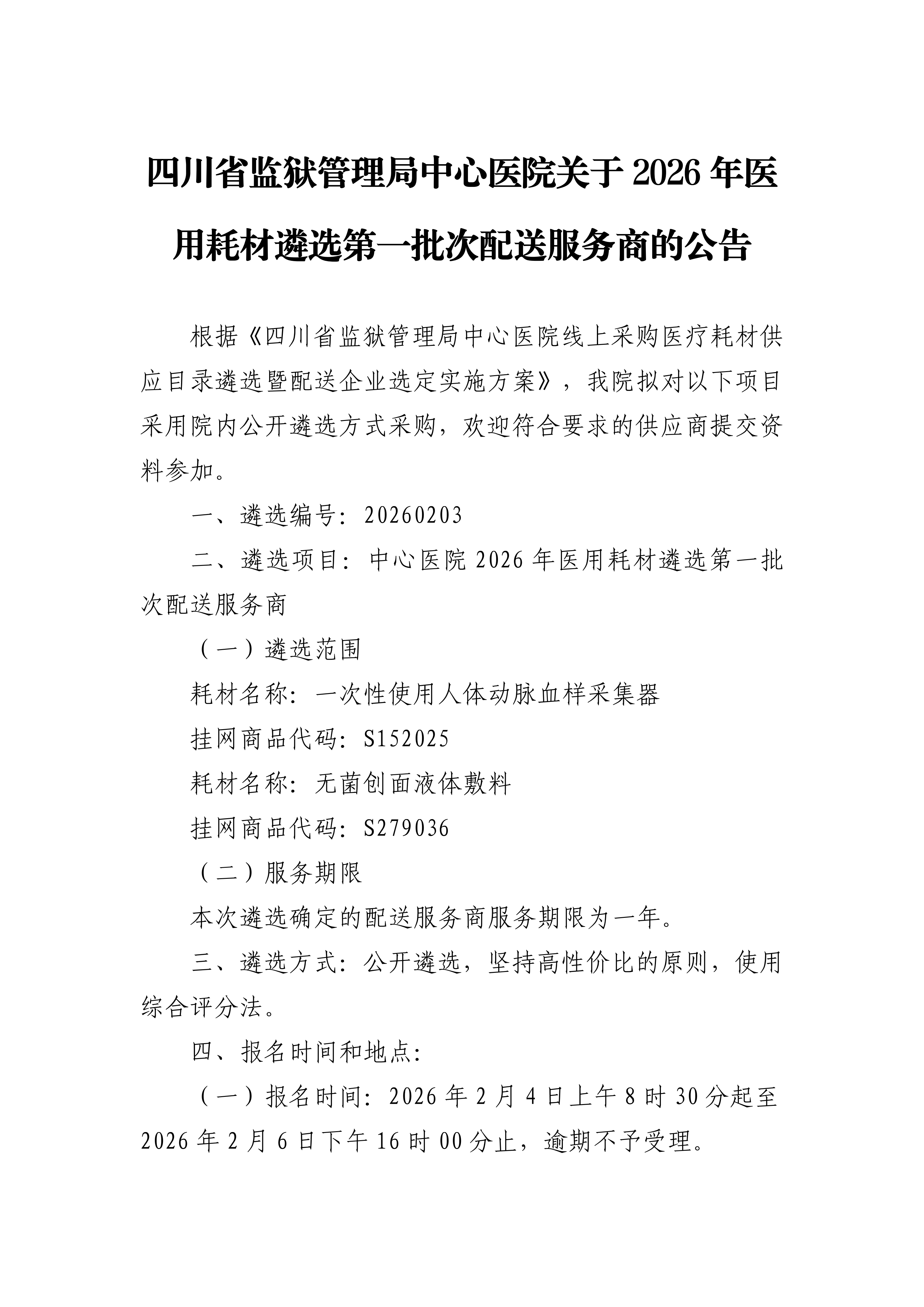 四川省监狱管理局中心医院关于2026年医用耗材遴选第一批次配送服务商的公告