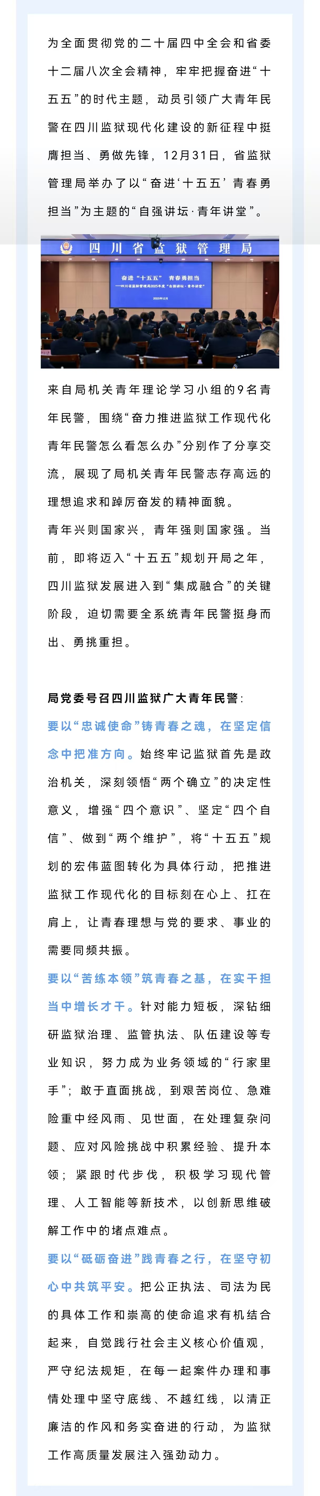 四川省监狱管理局举办2025年度“自强讲坛·青年讲堂”