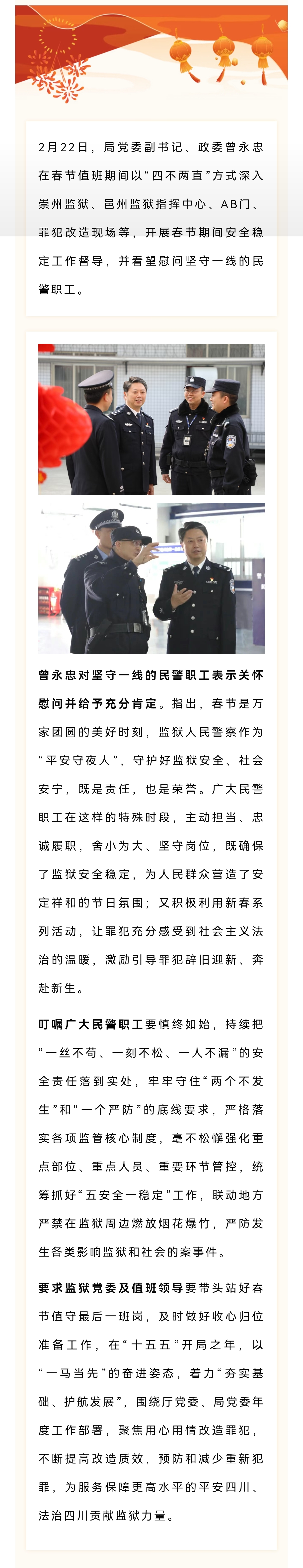 曾永忠赴基层监狱看望慰问民警职工并督导安全稳定工作