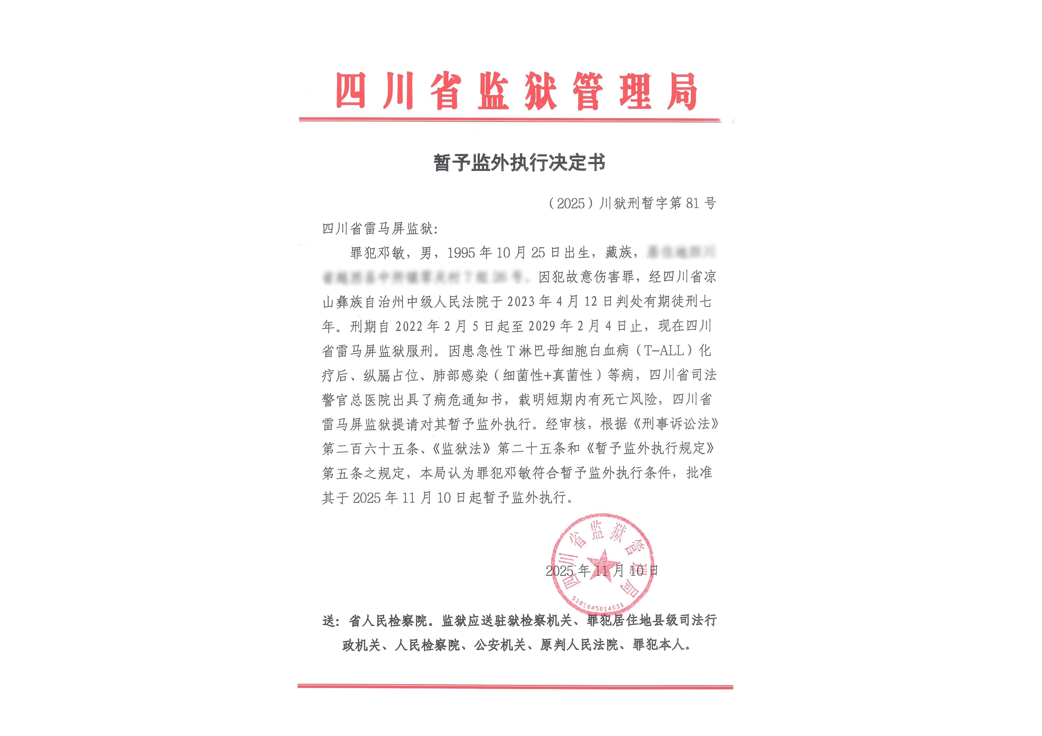 暂予监外执行决定书