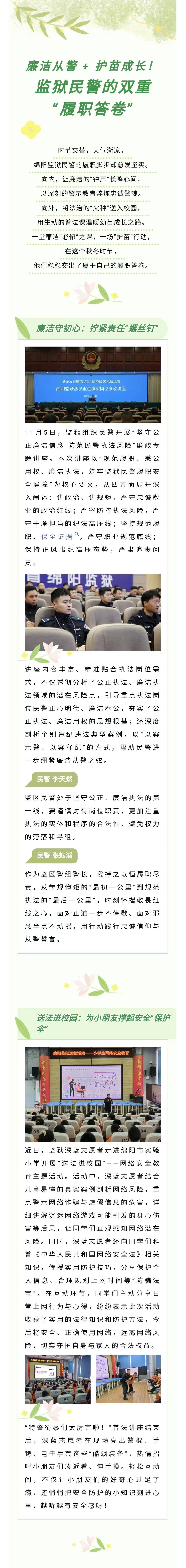 廉洁从警 + 护苗成长!监狱民警的双重“履职答卷”