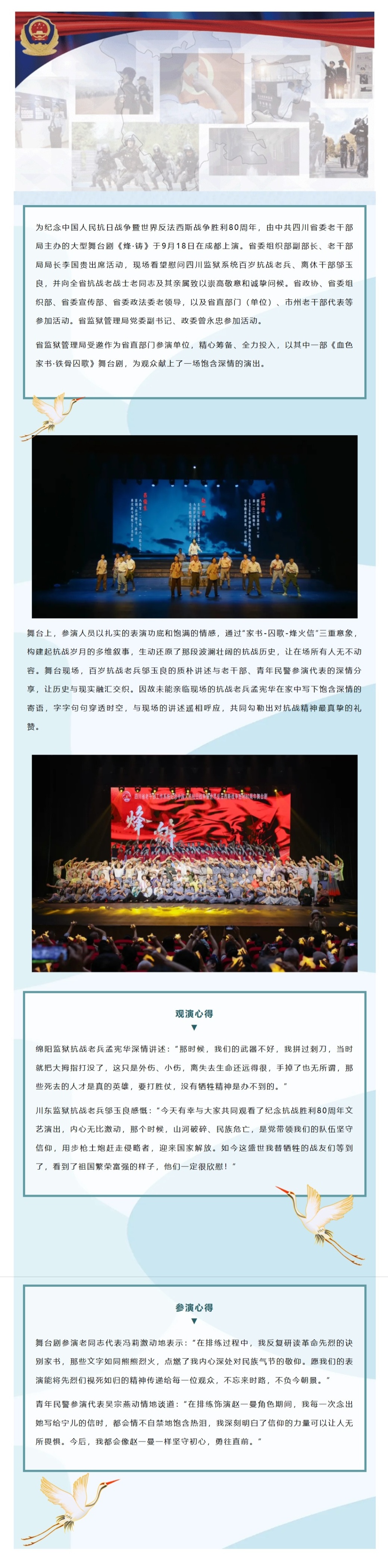 省监狱管理局参演《烽·铸》 共谱抗战精神传承华章