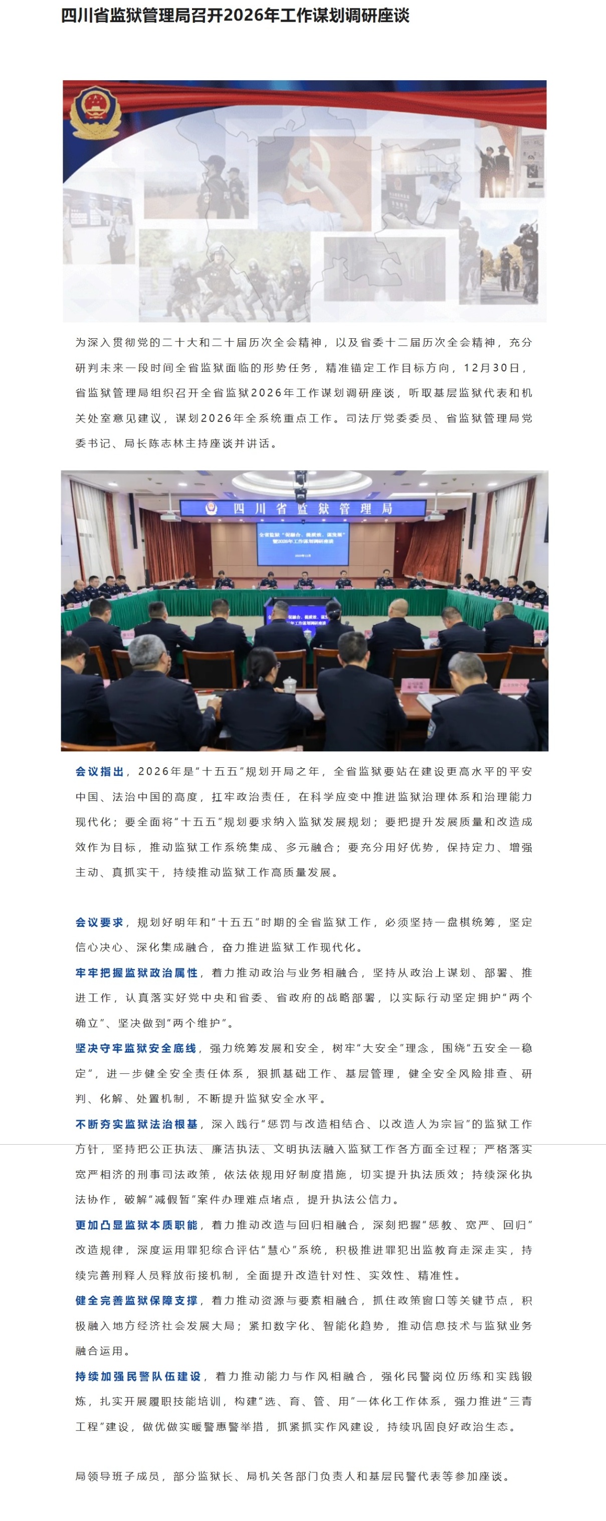 四川省监狱管理局召开2026年工作谋划调研座谈