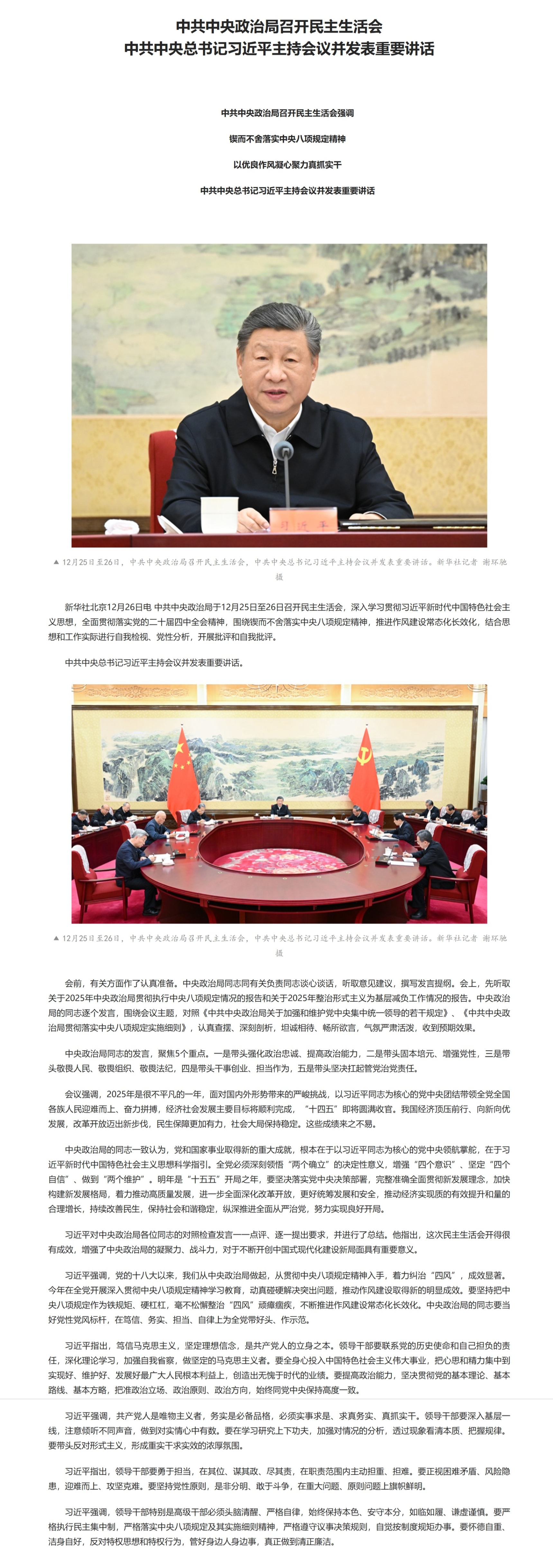 中共中央政治局召开民主生活会中共中央总书记习近平主持会议并发表重要讲话