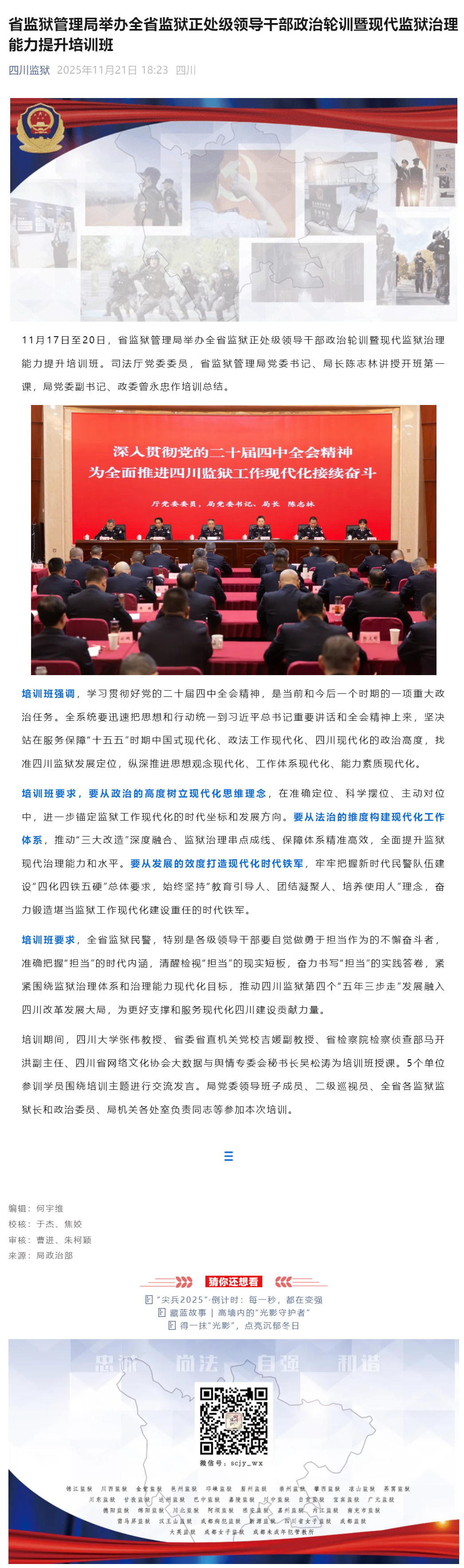 省监狱管理局举办全省监狱正处级领导干部政治轮训暨现代监狱治理能力提升培训班