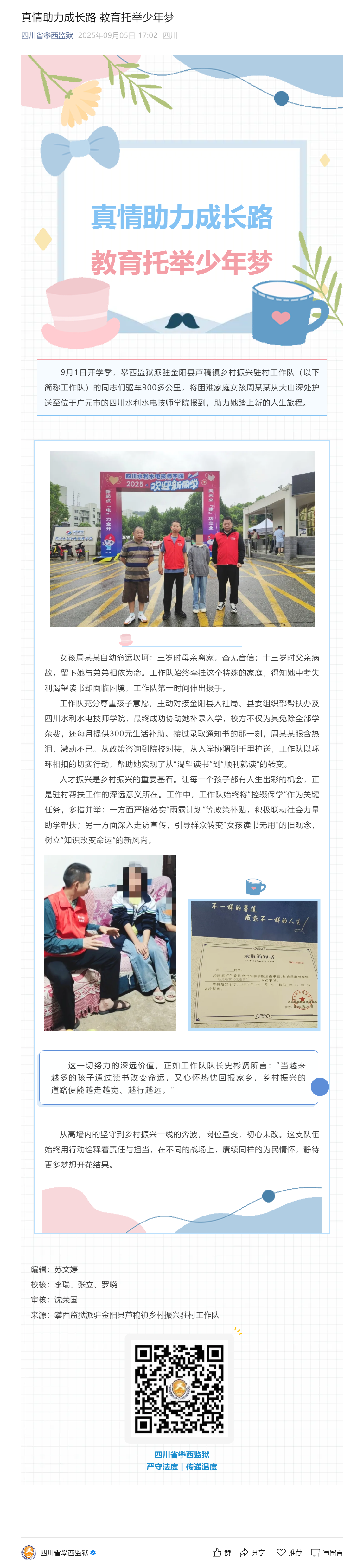 真情助力成长路 教育托举少年梦