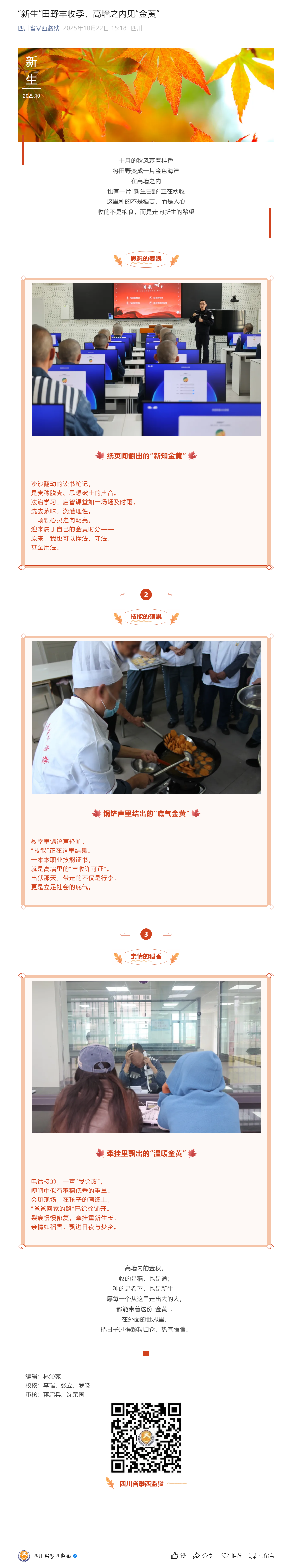 “新生”田野丰收季,高墙之内见“金黄”