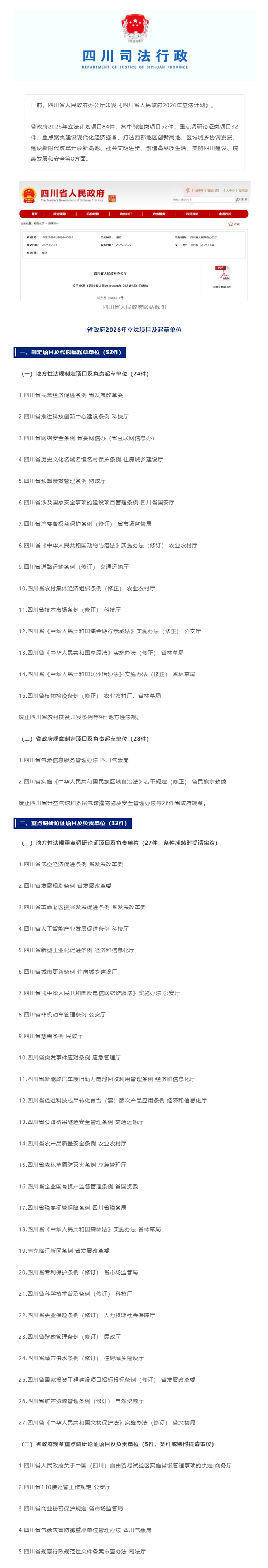 84件!四川省政府2026年立法计划出炉