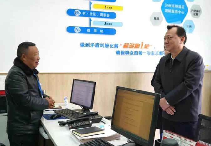 李丹一行先后来到泸州市公共法律服务中心、城市大脑、纳溪区综治中心和宜宾市司法局等地,了解公共法律服务、规范涉企行政执法、法律服务项目建设和纠纷排查化解等工作开展情况,看望慰问基层干部职工。李丹首先为大家送上节日慰问和新春祝福,对大家辛勤工作取得的成绩表示肯定,勉励大家在新的一年里,保持龙马精神,以“马上就办”的工作作风,创造“马到成功”的业绩。