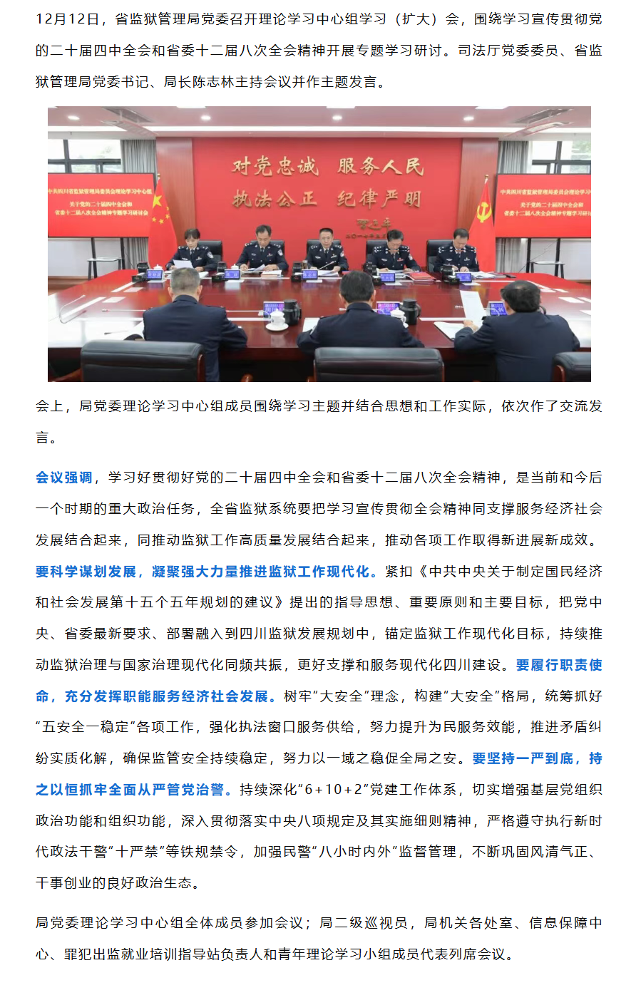 省监狱管理局党委理论学习中心组专题学习研讨党的二十届四中全会和省委十二届八次全会精神