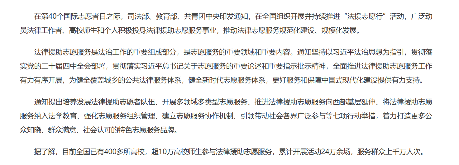 司法部、教育部、共青团中央在全国开展“法援志愿行”活动