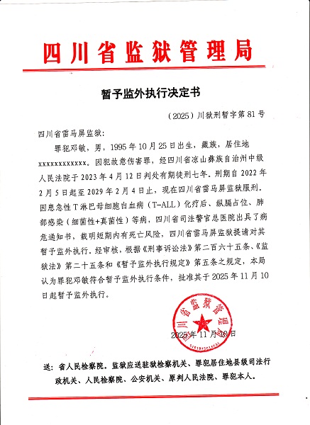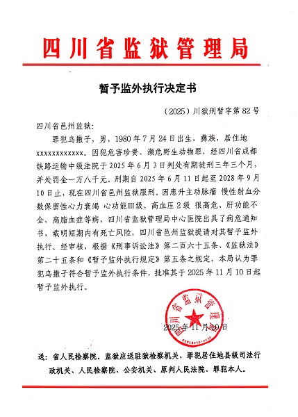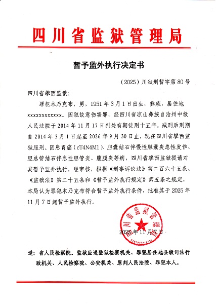 四川省监狱管理局根据罪犯暂予监外执行的法定条件和程序,经会议审议通过,依法准予以下罪犯暂予监外执行: