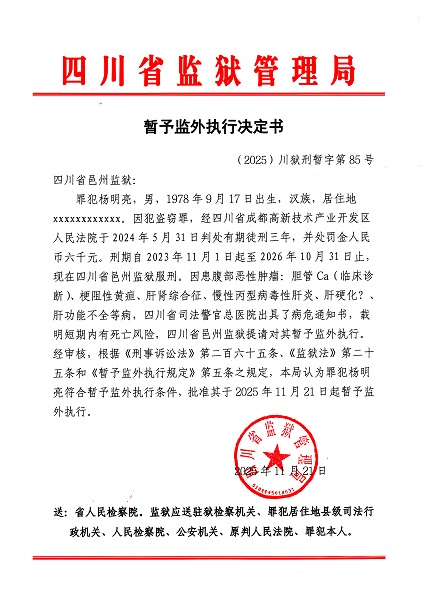 四川省监狱管理局根据罪犯暂予监外执行的法定条件和程序,经会议审议通过,依法准予以下罪犯暂予监外执行: