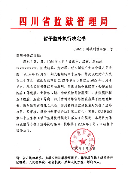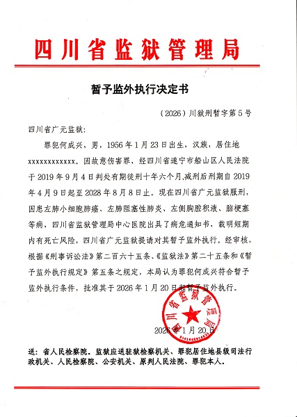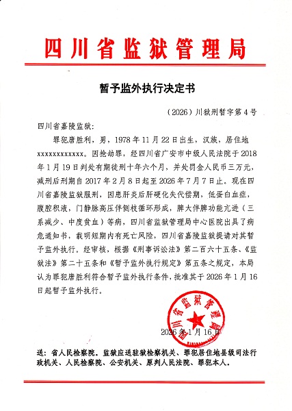 四川省监狱管理局根据罪犯暂予监外执行的法定条件和程序,经会议审议通过,依法准予以下罪犯暂予监外执行: